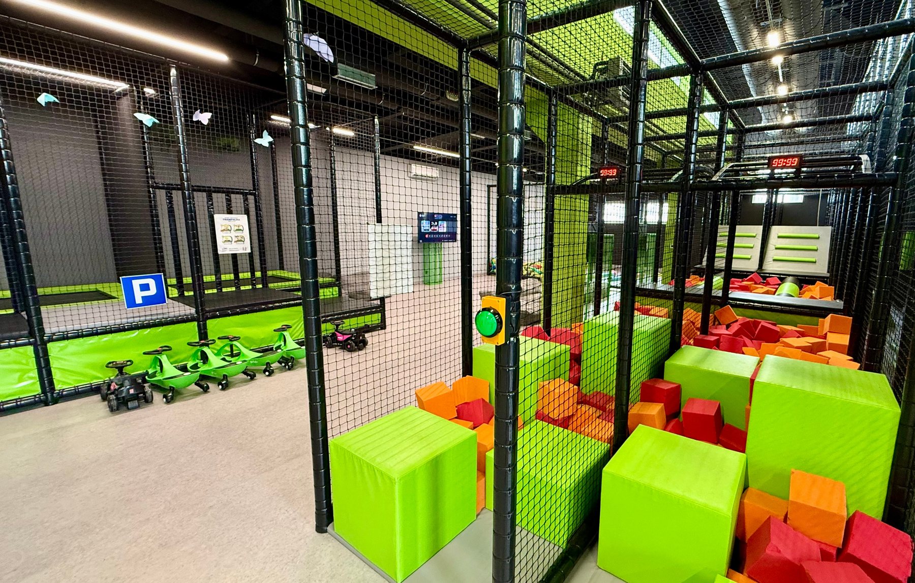 W naszej sali zabaw znajdziesz rozbudowany małpi gaj ze zjeżdżalniami, tyrolką, labiryntami, spider tower, a nawet boiskiem do grania, tor ninja gdzie dzieci będą mogły sprawdzić swoją sprawność fizyczną, trampoliny, strefę gier interaktywnych, strefę klocków XXXL, a także kącik dla najmłodszych.